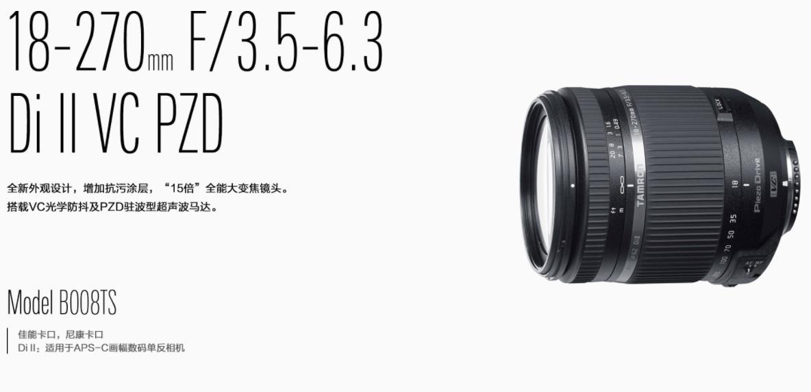 搭載PZD駐波型超聲波馬達及VC光學防抖,實現小型輕量化的同時,提升鏡頭性能15倍超大變焦覆蓋了從廣角到長焦的焦距范圍,濾鏡口徑Φ62mm及450g的輕巧設計,能與小型數碼單反相機很好的匹配。駐波型超聲波馬達PZD,令對焦更順暢。 對于望遠端或低光照環境下的拍攝,由于搭載了VC光學防抖,可方便地進行手持攝影。這支適用于APS-C數碼單反相機的鏡頭能呈現清晰銳利的高畫質,充分發揮拍攝者的表現力。