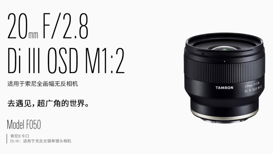 20mm F/2.8 Di III OSD M1:2(型號 F050)可以作為開啟超廣角攝影之旅的第一支鏡頭,它能充分靠近被攝體,是專為索尼E卡口無反相機設計的超廣角定焦鏡頭。輕便小巧的設計,減輕行李負擔。利用超廣角特有的透視感能拍出生動的風景照片。最近拍攝距離僅0.11m,可充分靠近被攝體。特殊材質的LD低色散鏡片與GM玻璃鑄造非球面鏡片優化配置,大幅抑制各種像差。從畫面中心到周邊的高畫質,描繪壯觀自然和宏偉建筑。配合簡易防滴構造及抗污涂層,戶外拍攝更安心。宏大風景,一支鏡頭魅力呈現。