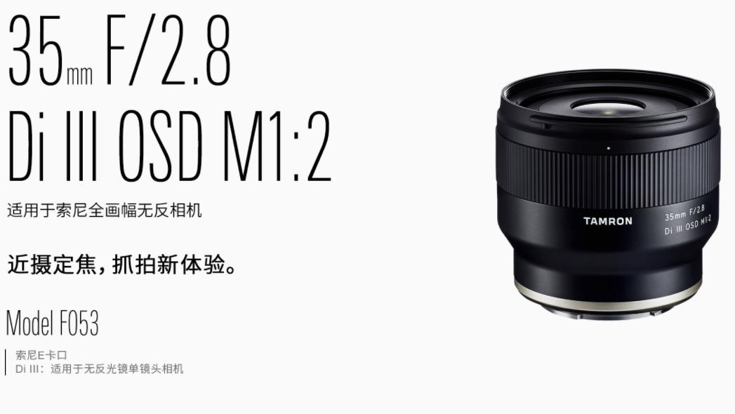 全畫幅無反相機適用,F/2.8廣角定焦鏡頭使用35mm F/2.8 Di III OSD M1:2(型號 F053)輕松抓拍,同時擁有廣角視角和強勁近攝能力,是專為索尼E卡口無反相機設計的廣角定焦鏡頭。35mm焦距直觀樸素,取景自由。從包含背景的人物攝影、桌面擺拍,到自然生態,應用廣泛。輕便小巧的設計,日常出行不增加負擔。最近拍攝距離0.15m,可充分靠近被攝體,發掘出事物的全新姿態。F/2.8大